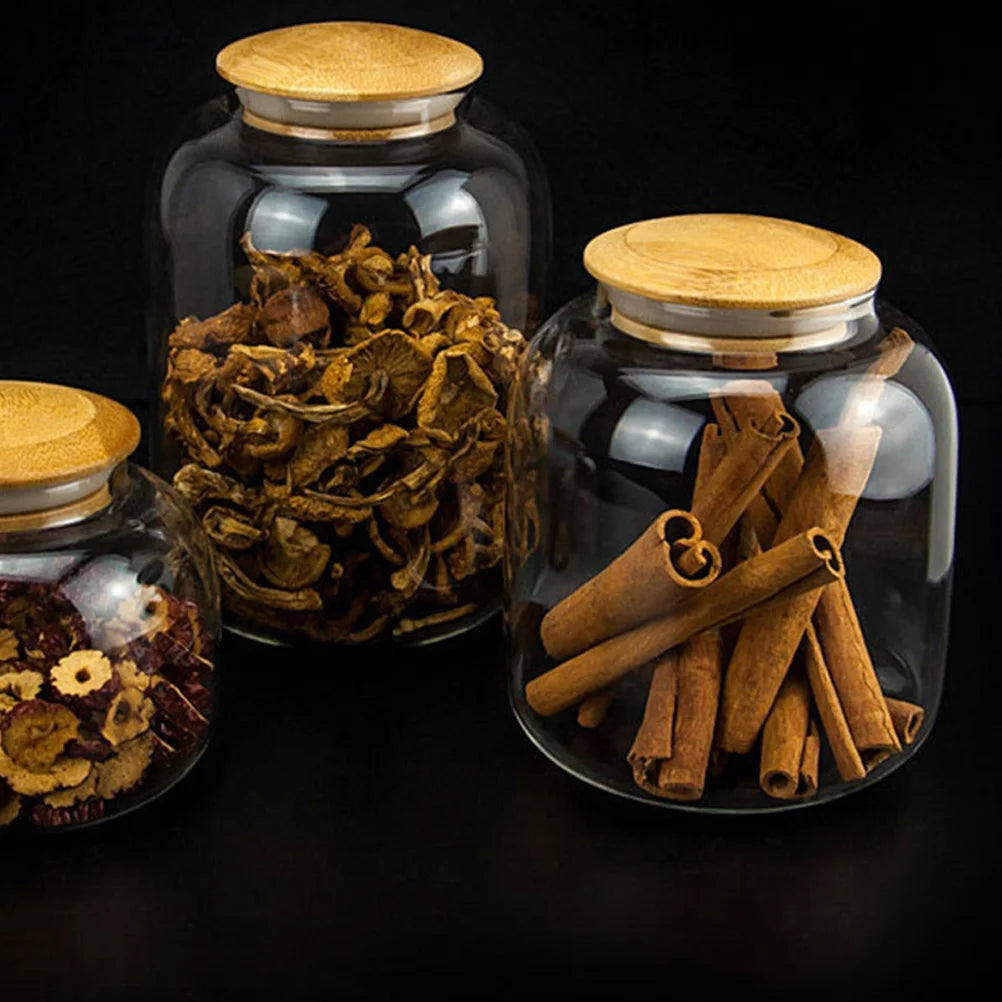 High borosilicate transparent glass storage tank, thicken and portable, suit for carrying. With a bamboo lid, transparent design, seal nicely and easy to see the inside. It is a good and multifunctional helper in life, helps you storage miscellaneous grains, nuts, snacks, tea leaves, seasoning easily. Your best accessories for your home kitchen storage.