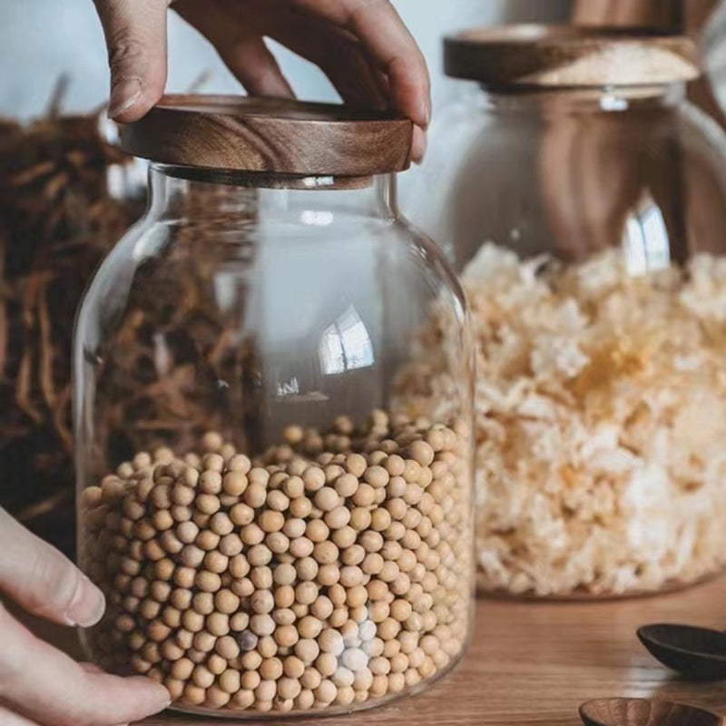 1200-3000 Ml Large Capacity Glass Sealed Jar Lid Sealed Storage Wood