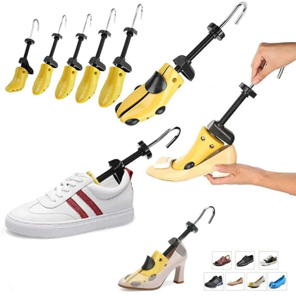 The shoe stretchers provide 4-way stretching: Stretch width to widen shoe; Stretch length to increase shoe size; this Shoe stretchers are simple and work wonders for minimal stretching. Not only can they improve the fit of your favorite footwear, but can also help if you suffer from bunions, calluses, corns or other feet issues that cause pressure on the foot when inside of a shoe.