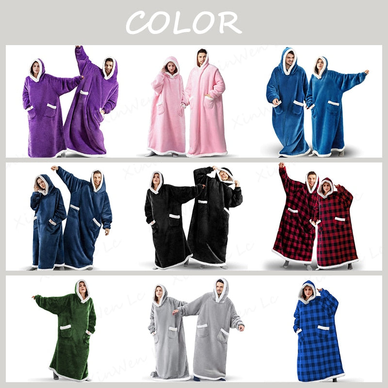 2022 Super Long Flannel Blanket with Sleeves Winter Hoodies Sweatshirt