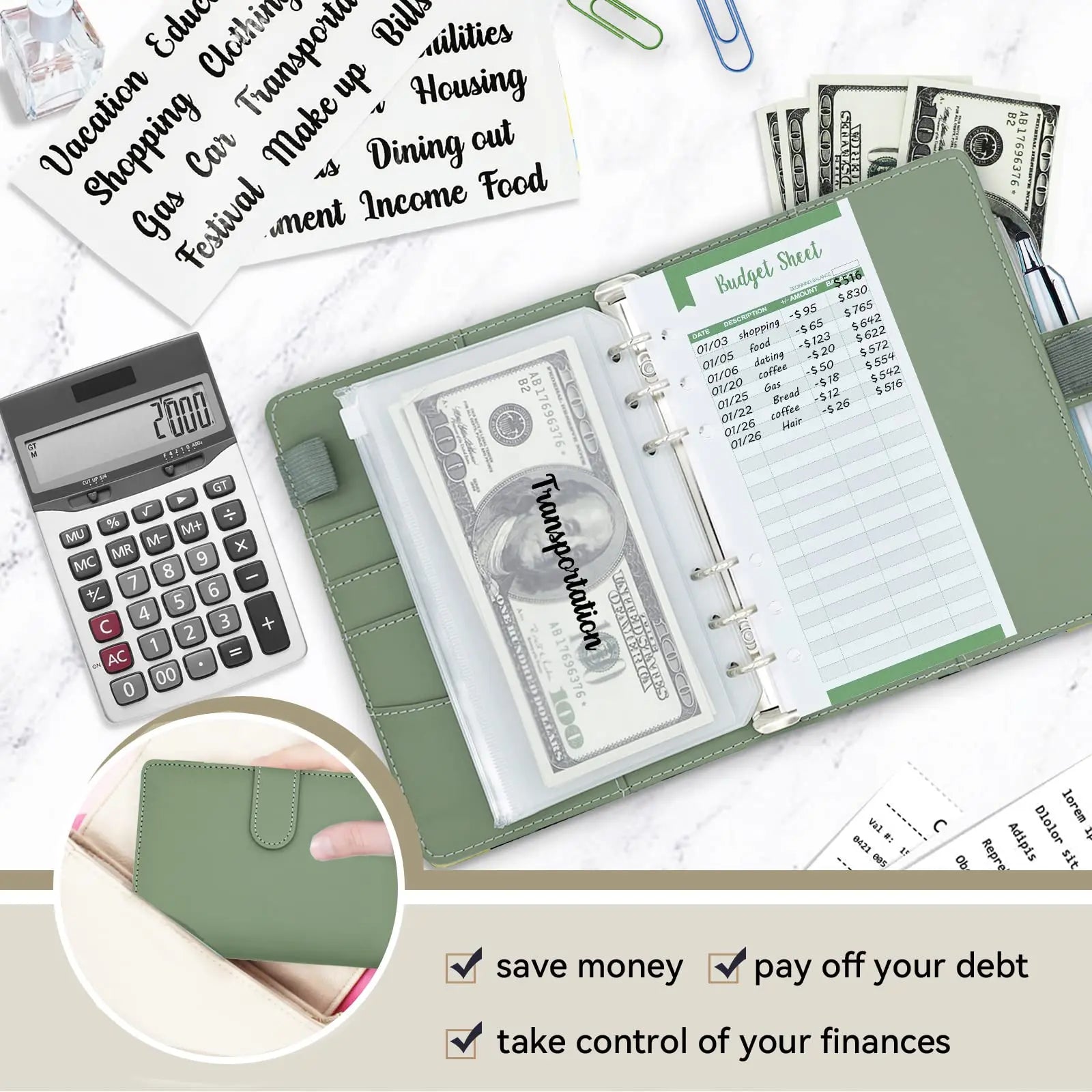 2023 Budget Binder A6 PU Leather Notebook Cash Envelopes System Set