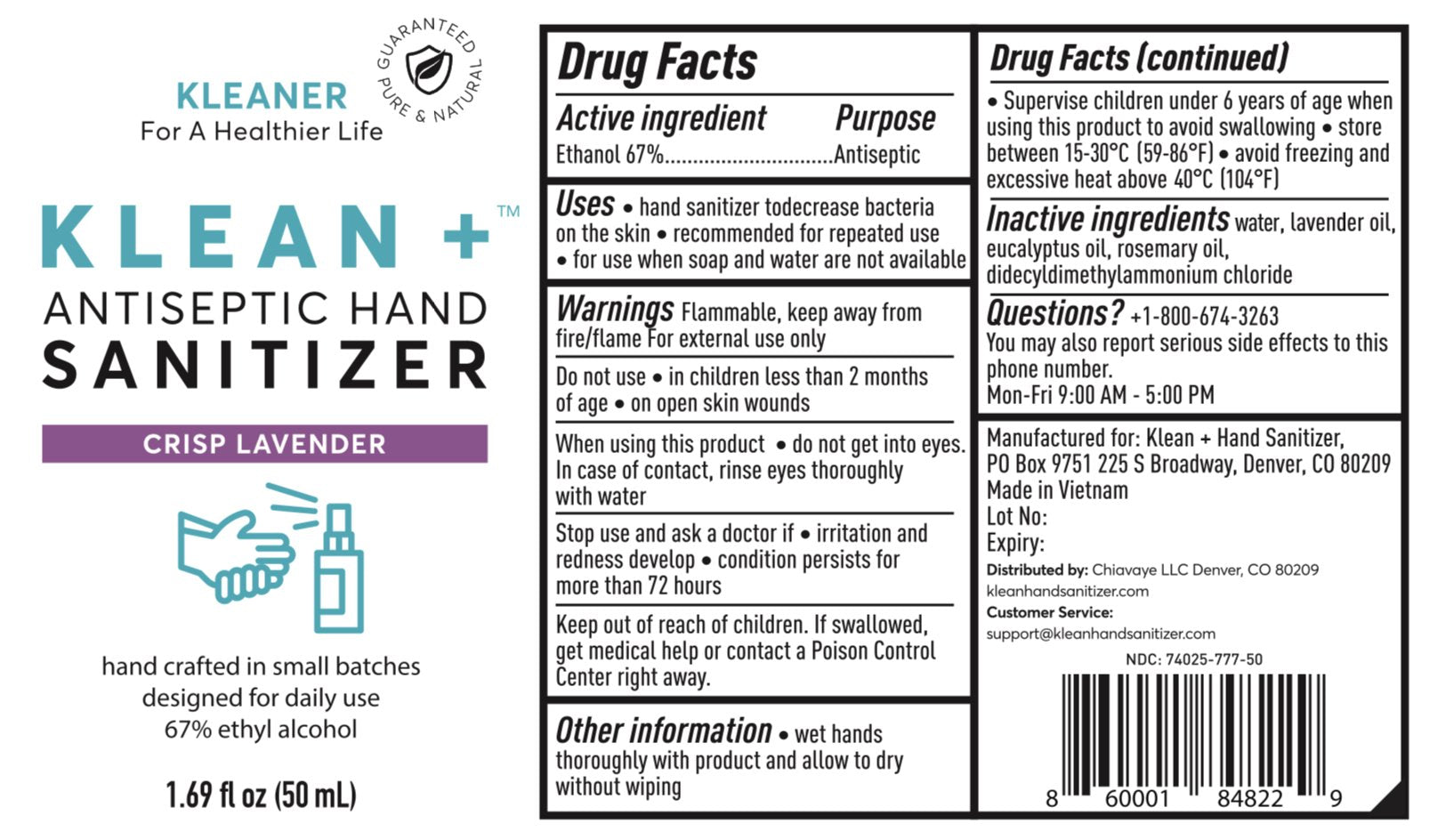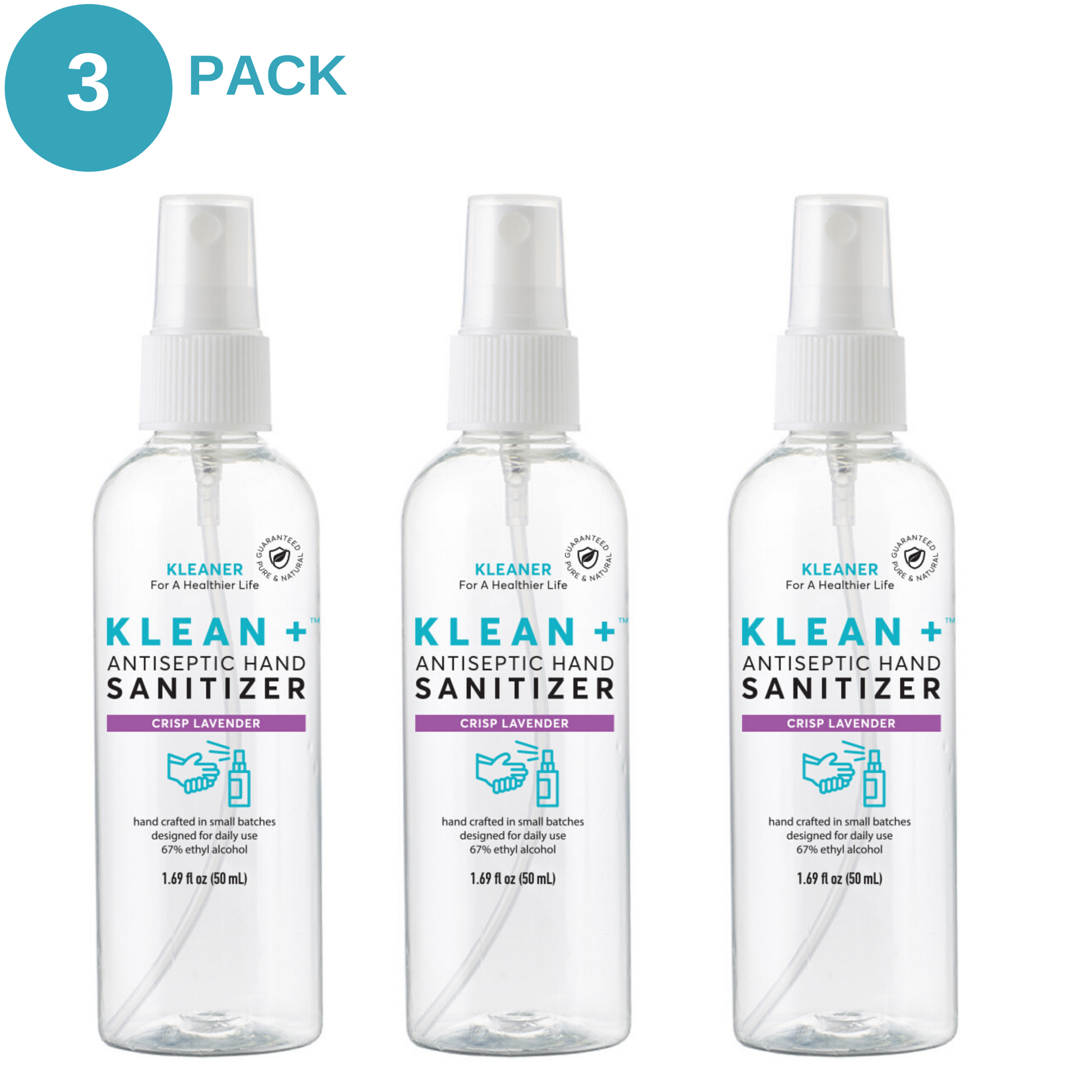 Klean + Hand Sanitizer Crisp Lavender 50ml (3Pack)