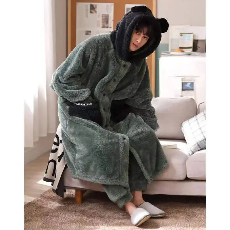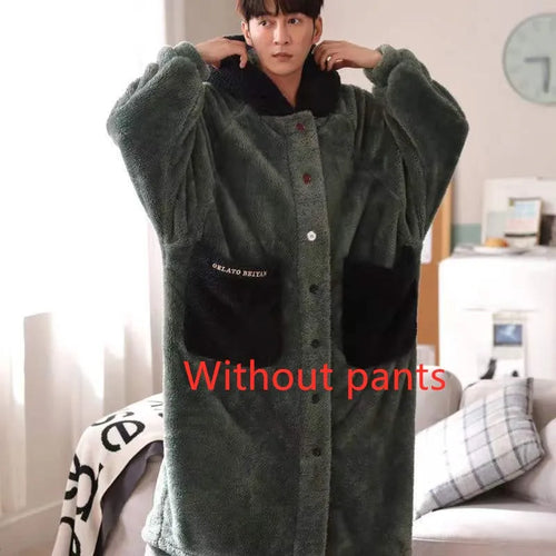 Coral Fleece Nightgown Men's Winter Plus Size Nightgown Suit Thicken