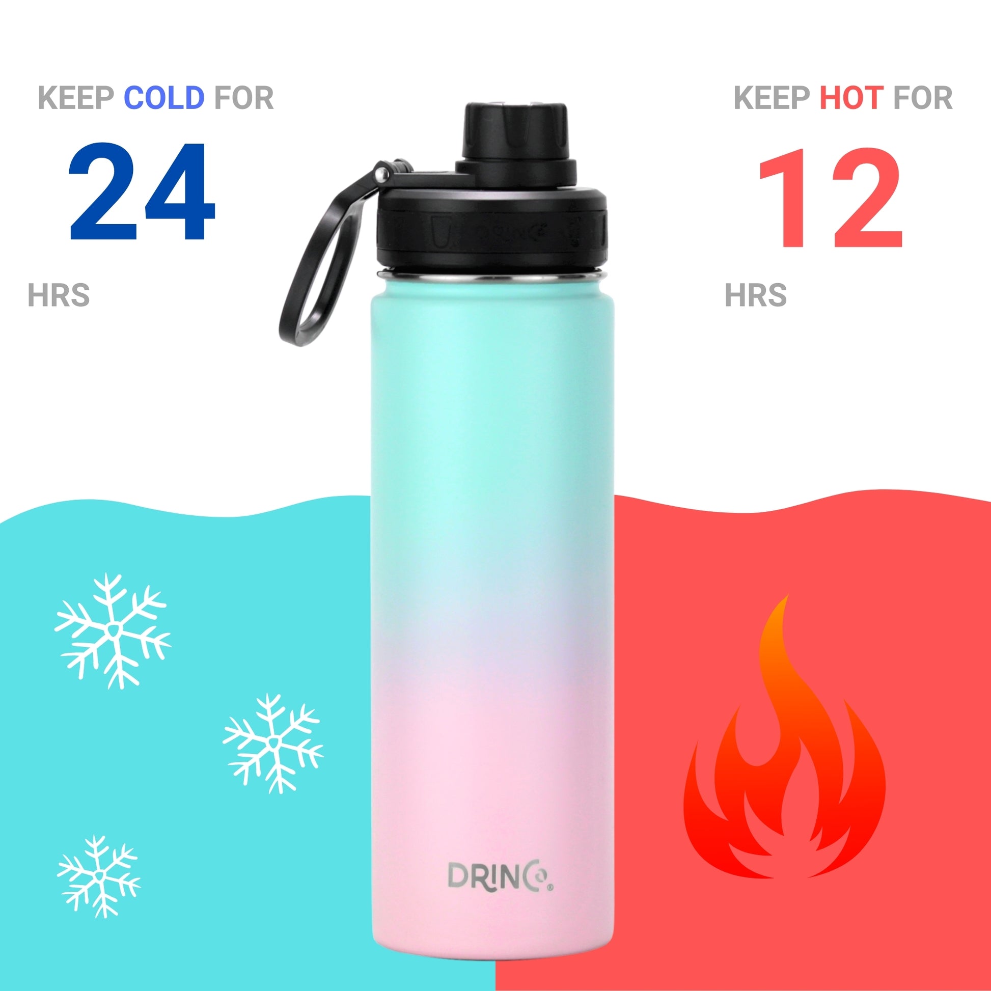 PREMIUM QUALITY: The Drinco water bottle is constructed with rust-resistant (18/8) food-grade stainless steel double walled body. The powder coating paint treatment makes the insulated water bottle virtually indestructible, scratch resistant and restricts temperature transfer.