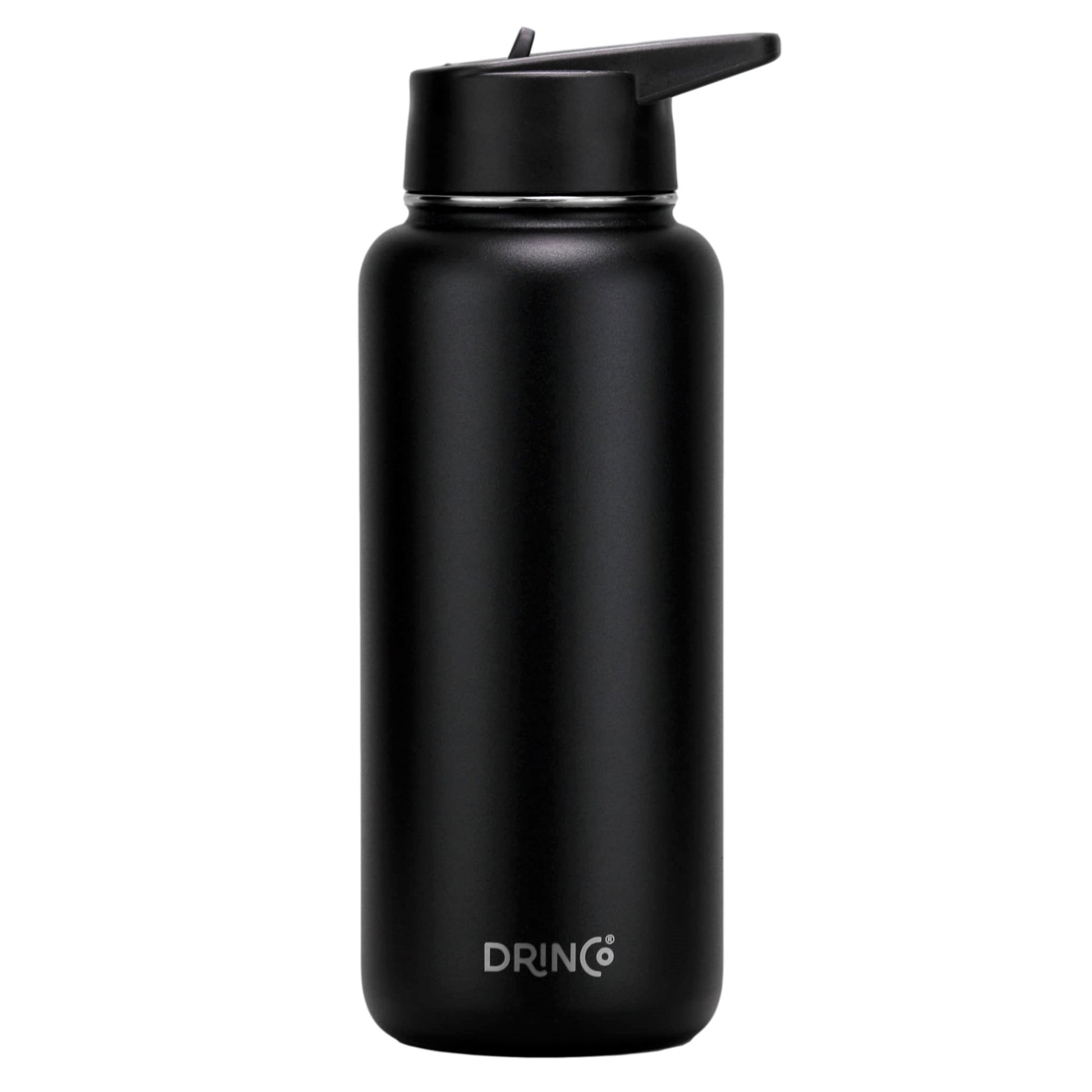 DRINCO® 32oz Stainless Steel Water Bottle (3 lids) - Black
