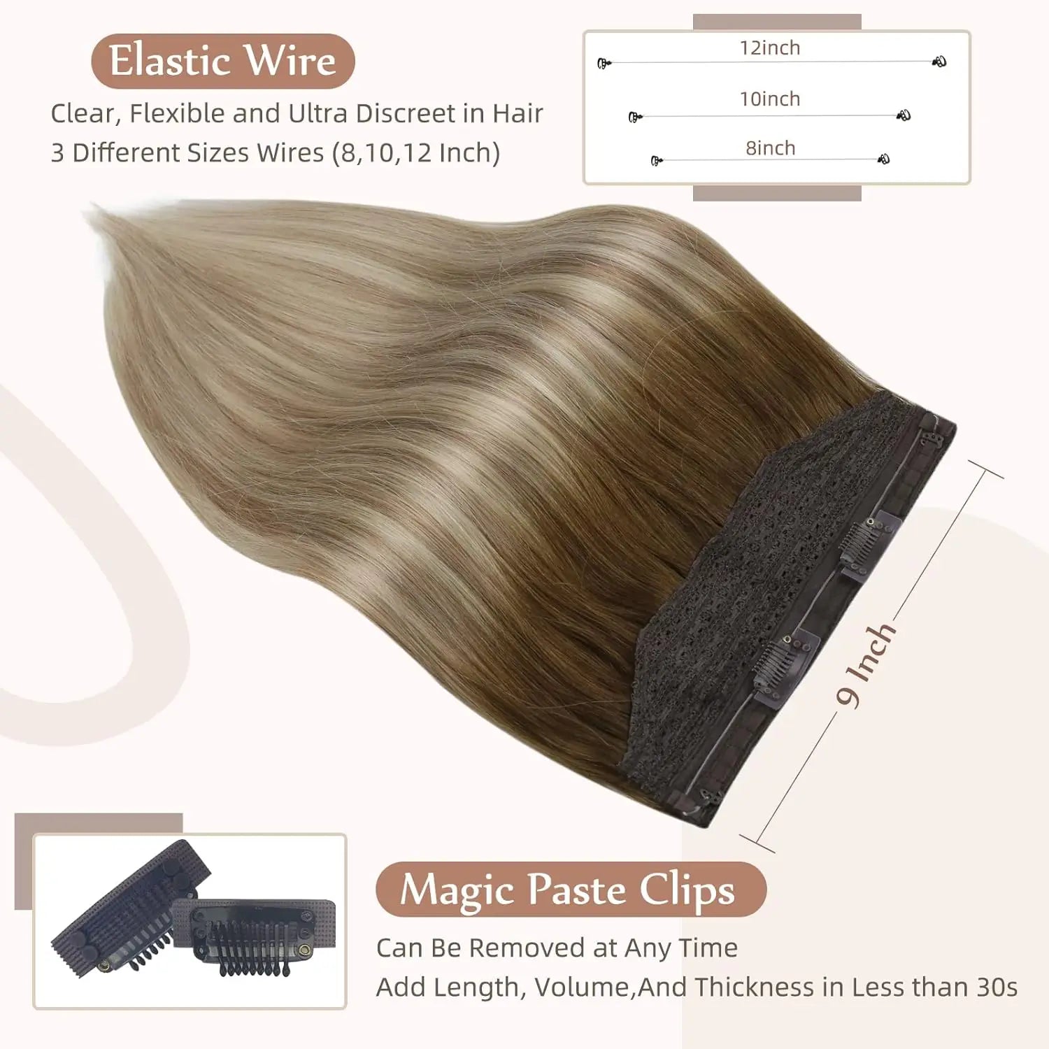 Full Shine Fish Line Hair Extensions One Piece Clips For Women 16" 20" Blonde Black Gray Color 100% Human Hair Extensions