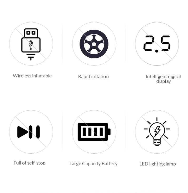 Cordless air compressor has a 35L/Min air flow, can fill a tire with a low tire in 5 minutes;built-in latest technology lithium battery, can fill up 5.5 pcs no gas tires. Great for driving, traveling or use at home, office, car etc.